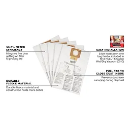 Includes (5) Fleece Dust Bags