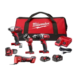 Our M18™ 5 Piece Combo Kit features an M18™ ½" Drill Driver, the most compact in its class to access the tightest work spaces while delivering users 500 in-lbs of torque and up to 1,800 RPM. Our M18™ ¼" Hex Impact Driver offers the best power to size ratio among like competitors with up to 2,750 RPM, 3,450 IPM and 1,500 in-lbs of fastening torque for class-leading performance. The M18™ Multi-Tool cuts up 50% faster and delivers up to 2X more cuts per charge than the competitors. Our M18™ LED Worklight has a 35° rotating head to easily direct the 100 Lumens of TRUEVIEW™ High Definition Output to the desired work area. The included M18™ XC 3.0 and M18™ CP 1.5 Batteries deliver more runtime, power and speed to the power tools and worklight in this kit. Also included in this 5 piece power tool kit is an M18™/M12™ Multi-Voltage Charger, a contractor bag, steel blade for wood, sanding pad and sandpaper in varying grits.