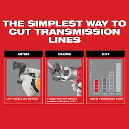 Our M18™ FORCE LOGIC™ 1590 ACSR Cutter is the Simplest Way to Cut Transmission Lines. A patent-pending jaw design enables opening with just two fingers, enhancing alignment while delivering the easiest operation with Class 3 Gloves. The wire automatically closes the jaw, providing hands-free jaw closure and the easiest mid-span cuts. Fully balanced, only 11.75 lbs, and the fastest transmission cutter, the M18™ FORCE LOGIC™ 1590 ACSR Cutter delivers the best control while enhancing linemen’s productivity and reducing fatigue. The M18™ FORCE LOGIC™ 1590 ACSR Cutter features a fully enclosed high-speed hydraulic pump, Brushless Motor, REDLINK™ Electronics, and REDLITHIUM™ Batteries (sold separately) delivering Ultimate Reliability in the toughest conditions. Featuring Milwaukee® ONE-KEY™ Technology, view tool usage, receive notifications for recommended maintenance, and sync information wirelessly to the cloud.