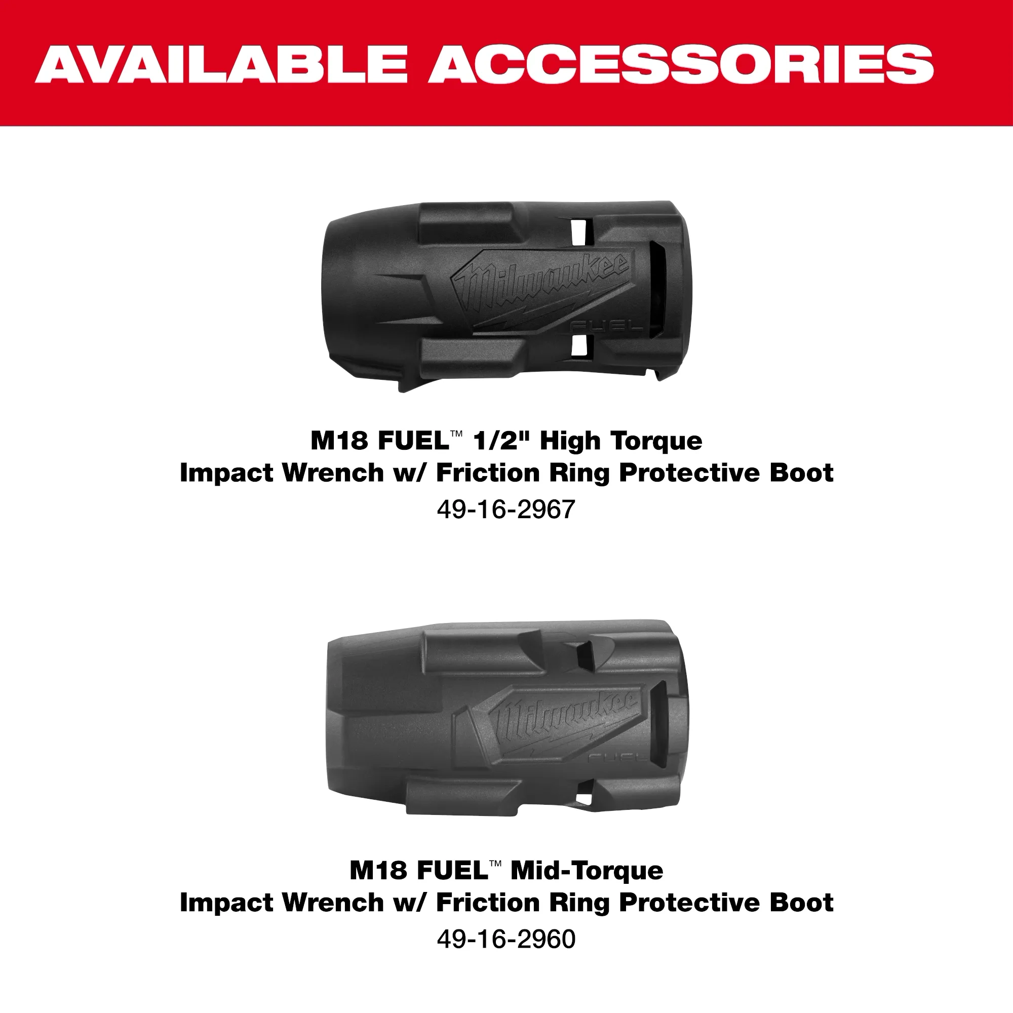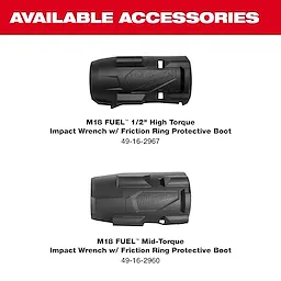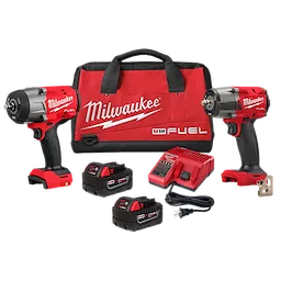 Our M18 FUEL™ ½” High Torque Impact Wrench & 3/8” Mid-Torque Impact Wrench Automotive Combo Kit includes our M18 FUEL™ 1/2" High Torque Impact Wrench w/ Friction Ring that is the most power-dense impact wrench in its class, provides greater access in tight spaces, and maximizes productivity through faster removal speeds. The POWERSTATE™ Brushless Motor delivers up to 1,100 ft-lbs of Fastening Torque and 1,500 ft-lbs of Nut-Busting Torque when paired with our M18™ REDLITHIUM™ XC5.0 resistant battery, while the compact size at 7.6" in length gives users greater access in tight spaces. The M18 FUEL™ ½” High Torque Impact Wrench w/ Friction Ring maximizes productivity on the jobsite and in the shop by removing stubborn bolts and fasteners faster than cordless competitors. Our patented battery isolation system provides a secure battery connection and controls vibration transmitted to the pack. Our M18 FUEL™ 3/8" Mid-Torque Impact Wrench w/ Friction Ring delivers the best power-to-weight ratio, most access in tight spaces, and faster removal speed. It provides 600 ft-lbs of nut-busting torque and only weighs 5.0 lbs, making it extremely versatile, capable of performing a wide variety of applications, such as removing large bolts or lug nuts. Tri-LEDs surround the anvil on both tools to deliver brighter light with fewer shadows. The M18™ REDLITHIUM™ XC5.0 Resistant Battery Packs included provide increased protection against oils, greases, & solvents.