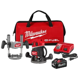 • Includes: 1x M18 FUEL ½” Router console, 1x fixed base, 1x plunge base, 1x HO XC6.0 battery pack, 1x M18/M12 Rapid Charger, 1x 1/2 in. collet, 1x 1/4 in. collet, 1x 6 in. standard sub-base plate, 1x 6 in. template sub-base plate, 1x dust shroud, 1x universal hose adapter, 1x straight edge guide, 2x 1-1/16 in. wrenches.
