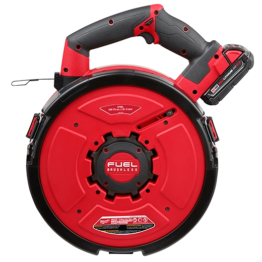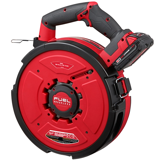 Our M18 FUEL™ ANGLER™ 240' Steel Pulling Fish Tape Kit is part of the world's first battery powered fish tape solution. The fish tape wire puller’s AUTO-RUN™ Powered Feed and Retract eliminates manual pulling tools for less user fatigue and automatically reels the tape back into the Replacement Cartridge for a cleaner jobsite. Our electric fish tape wire puller features a POWERSTATE™ Brushless Motor that provides the ability to pull wire through a 200' run with 360° degrees of bends. This new battery powered fish tape puller is more efficient with an automatic feed that pushes through bends faster for maximum jobsite efficiency. The MILWAUKEE® M18 FUEL™ ANGLER™ Pulling Fish Tape Powered Base is powered by the M18™ REDLITHIUM™ battery pack and is compatible with 3 Less Binding steel and non-conductive Replacement Cartridges to tackle any situation. Our automatic wire puller is equipped with REDLINK PLUS™ Intelligence to ensure maximum performance and protection from overload. The M18 FUEL™ ANGLER™ 240’ Steel Pulling Fish Tape Kit includes one 120' x 1/8" Steel Pulling Fish Tape Replacement Cartridge, two M18™ REDLITHIUM™ CP2.0 Batteries, and one M18™ & M12™ Multi-Voltage Charger.