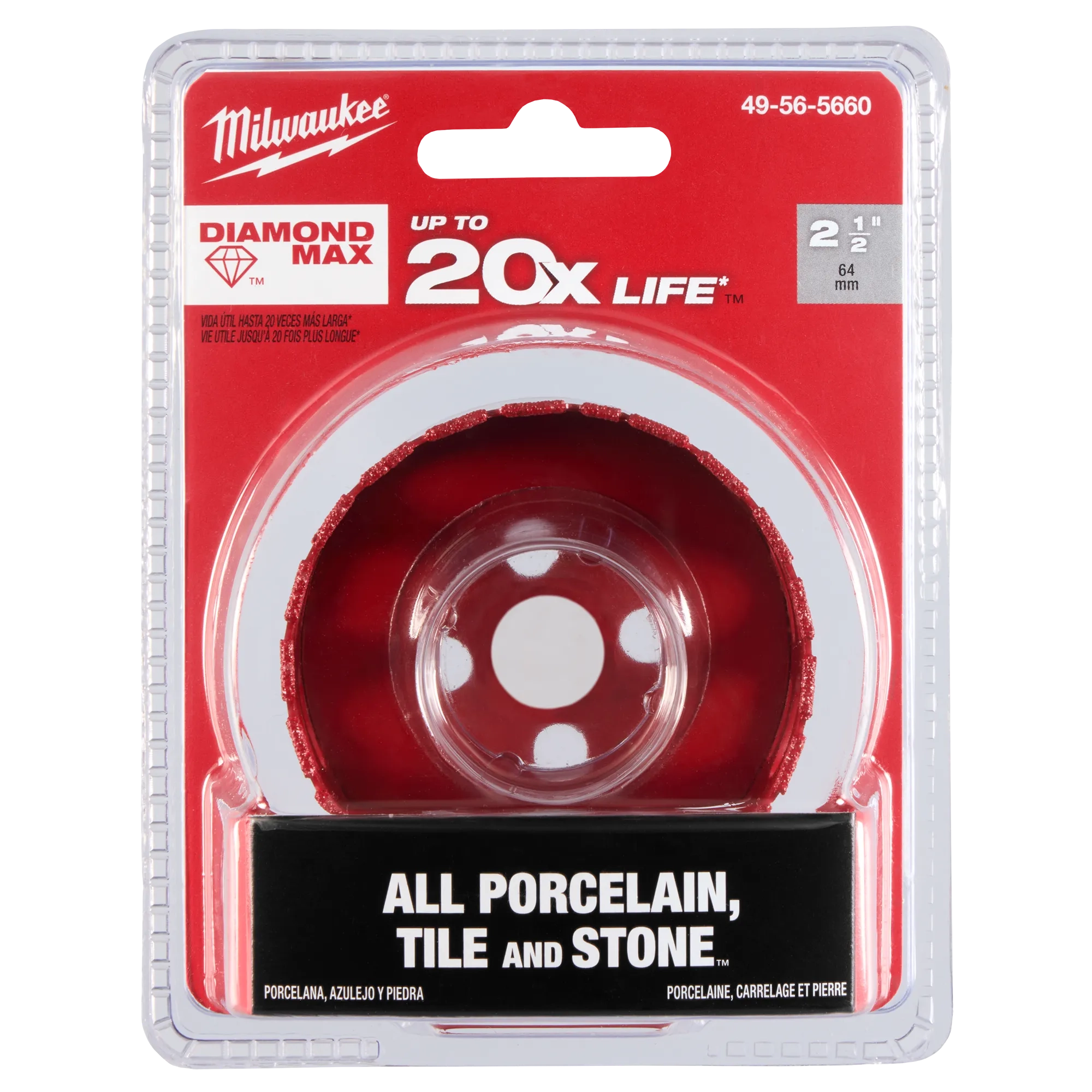 Choose the Milwaukee® Diamond Plus™ Hole Saw for up to 10X longer life when cutting tile, stone and glass. Diamond Plus™ Hole Saws deliver best-in-class performance, with higher grade diamonds for maximum heat and fracture resistance. An improved braze provides superior diamond retention when cutting hard, abrasive materials. The Diamond Plus™ Threaded Hole Saw features large slot geometry for easy plug removal. Designed as the single cutting solution for all tile, stone, and glass applications, Diamond Plus™ offers the lowest cost-per-hole on the market. Use it with standard hole saw arbors or with the Angle Grinder Adapter (49-56-7105), or Retractable Starter Bit with Large Arbor (49-56-7135) for even greater productivity and ease of use.