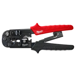 Our Ratcheting Pass-Through Crimper & Stripper delivers easy, clean crimps as the pass-through blades trim excess conductors to eliminate unintended contact. Designed for installing RJ22 and RJ11/RJ12 modular and RJ45 PASS-THROUGH connectors, this tool is equipped with cutting blades and a stripping nest to reduce prep work time and eliminate the need to carry multiple tools. The full-cycle ratcheting mechanism with easy release ensures complete connector termination. Ergonomic grip handles reduce hand strain and allow users to crimp comfortably.
