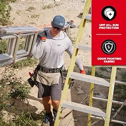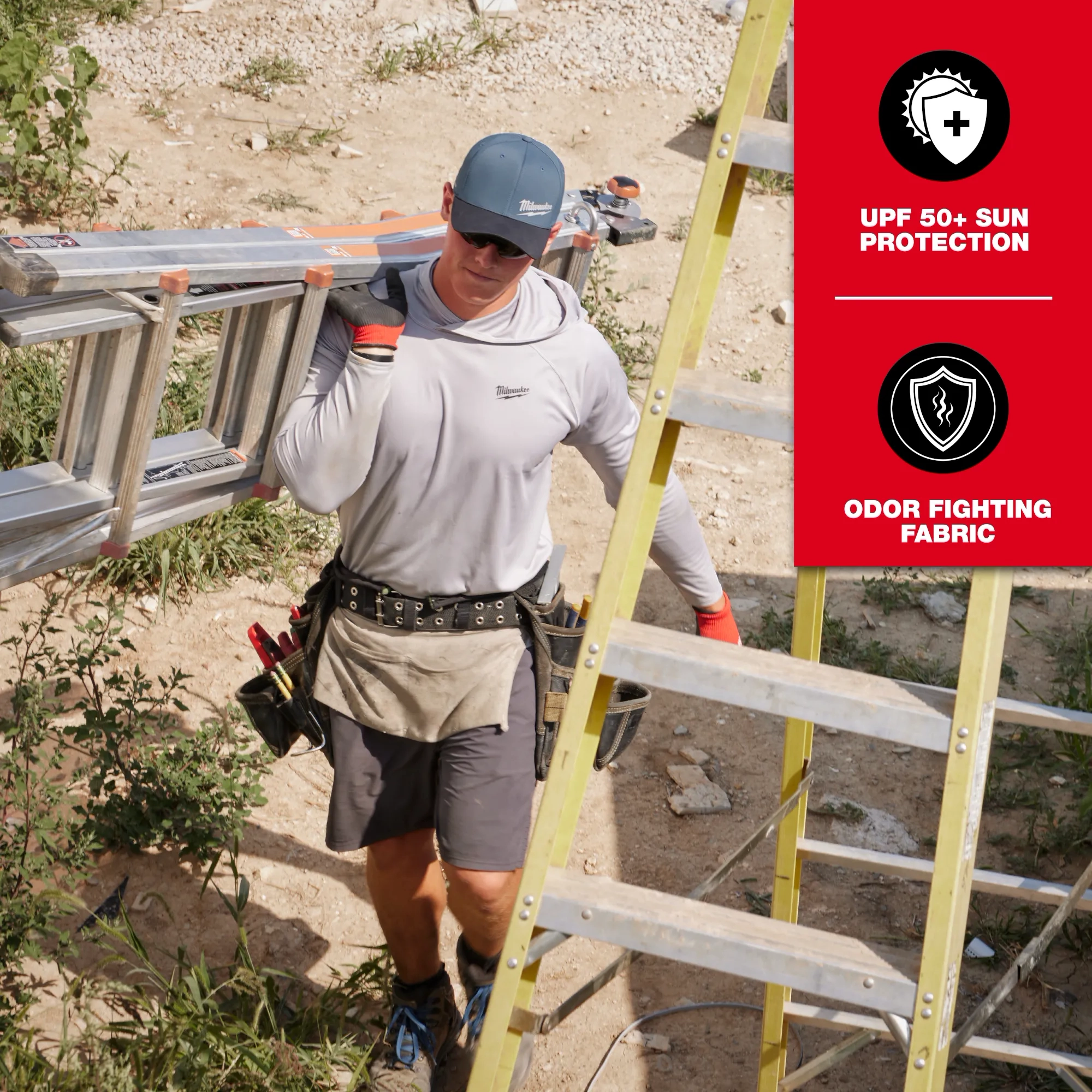 Part of the MILWAUKEE® WORKSKIN™ Collection, our Hooded Sun Shirt is BUILT TO FIGHT SWEAT. Engineered with a custom sweat wicking fabric, the WORKSKIN™ Hooded Sun Shirt is designed to keep you dry and comfortable. Complete with UPF 50+ sun protection and odor fighting technology, this Sun Shirt is perfect for hot summer days on the job. Milwaukee® WORKSKIN™ products are developed in collaborating with feedback from users across the trades through continuous jobsite research.