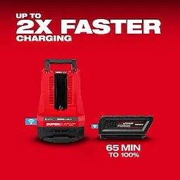 65 minute charge time with the MX FUEL™ REDLITHIUM™ FORGE™ HD12.0 and Super Charger