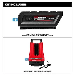 Kit Includes: (1) MX FUEL™ REDLITHIUM™ FORGE™ HD12.0 & (1) MX FUEL™ Super Charger