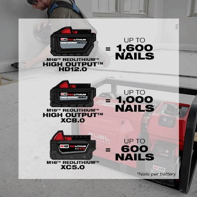 • M18™ REDLITHIUM™ Battery Pack: Delivers more work per charge and more work over the life of the pack than competitors