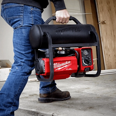 Our M18 FUEL™ 2 Gallon Compact Quiet Compressor is designed for the professional carpenter and remodeler. This quiet air compressor is only 68dB(A), making it the quietest cordless compressor on the market and quieter than most corded options. We’ve designed this 2-gallon air compressor to be high performing while reducing the noise professionals deal with on jobsites. Its low profile and stackable design allow our portable air compressor to be easily stored and transported on, around, and back off the jobsite. It has run-time professionals need to stay productive, giving you up to 1,600 18ga brad nails per charge. It is compatible with all MILWAUKEE® M18™ REDLITHIUM™ batteries making it easy to swap packs and keep running to finish your job.