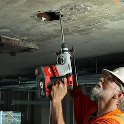 Get up to 2X longer life, 40% more runtime, 35% harder hitting and 10% faster drilling in 3-mode operation in one versatile tool. Industry-leading durability is yours with Milwaukee’s exclusive motor design and maximized component size. Powered by an unmatched REDLITHIUMTM Battery, the 7/8” SDS-Plus Rotary Hammer delivers 0-1,400 RPM, 0-4,800 BPM and up to 40% more runtime than competitive cordless models. With 1.4 ft-lbs of impact energy, it also delivers 10% faster drilling and 35% harder hitting.   A mechanical clutch protects the motor when the bit binds, and Milwaukee’s Anti-Vibration System protects you while offering greater comfort. Three-mode operation offers maximum versatility and is easily changed with convenient, two-finger controls. The kit includes 2 M18 high-capacity REDLITHIUM batteries, a charger, side handle, depth rod and carrying case.